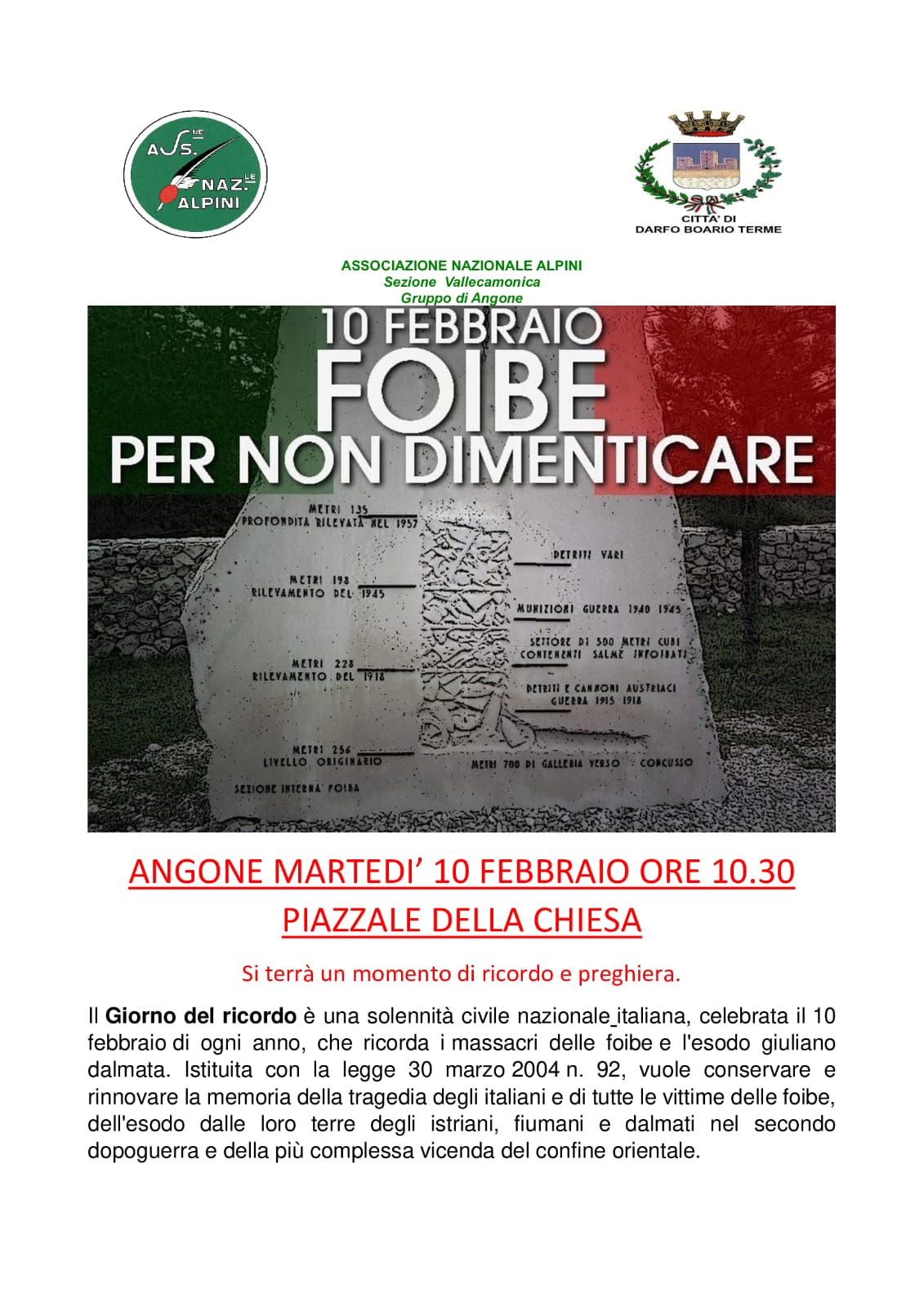 Un momento di ricordo e preghiera per non dimenticare le vittime delle foibe e l’esodo giuliano-dalmata.