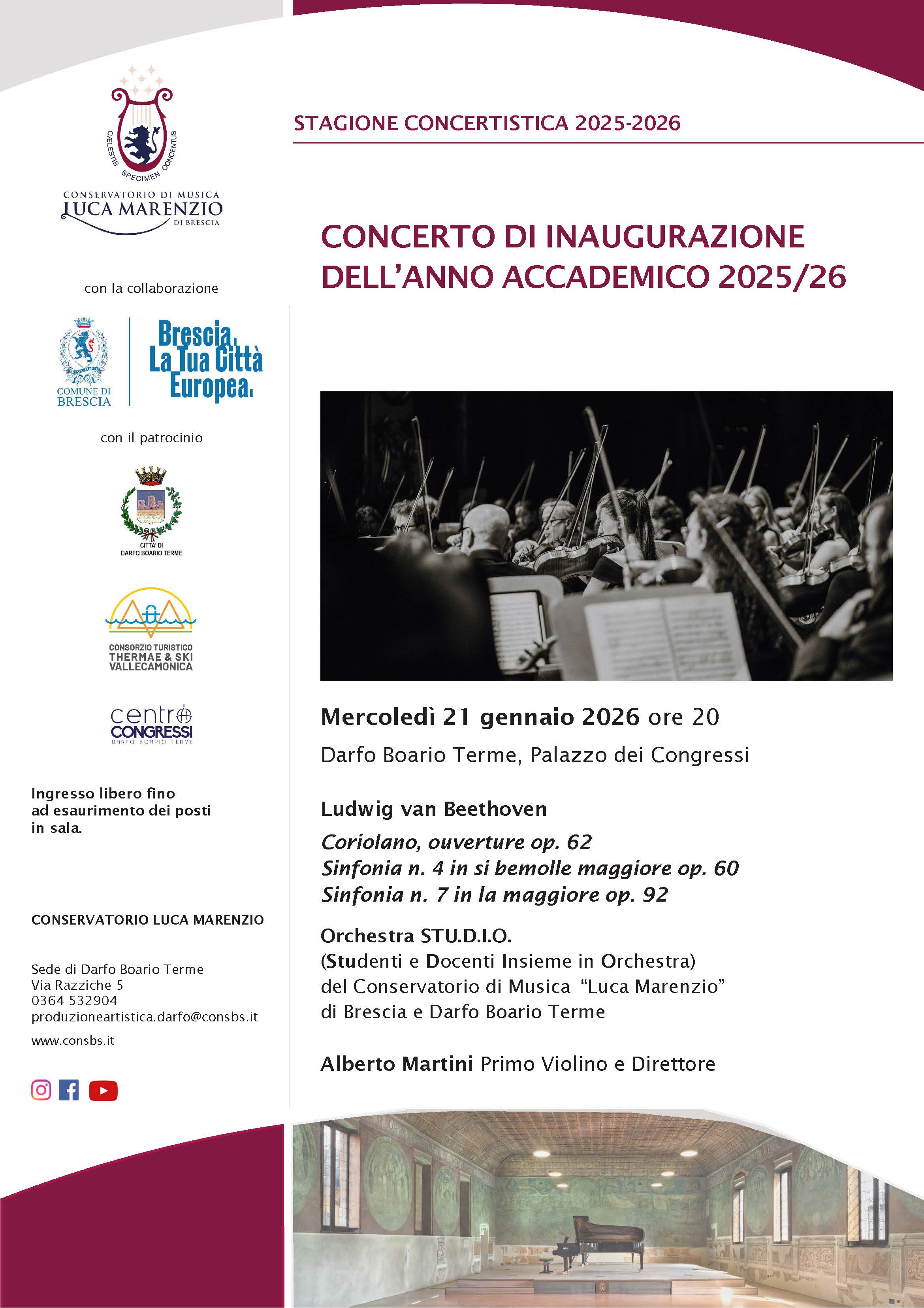 Il Conservatorio di musica Luca Marenzio di Brescia apre la stagione concertistica a Darfo Boario Terme