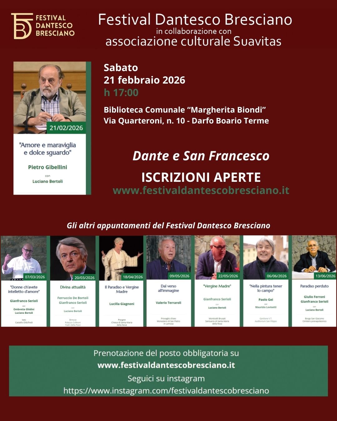 Prenotazione posto obbligatoria su www.festivaldantescobresciano.it