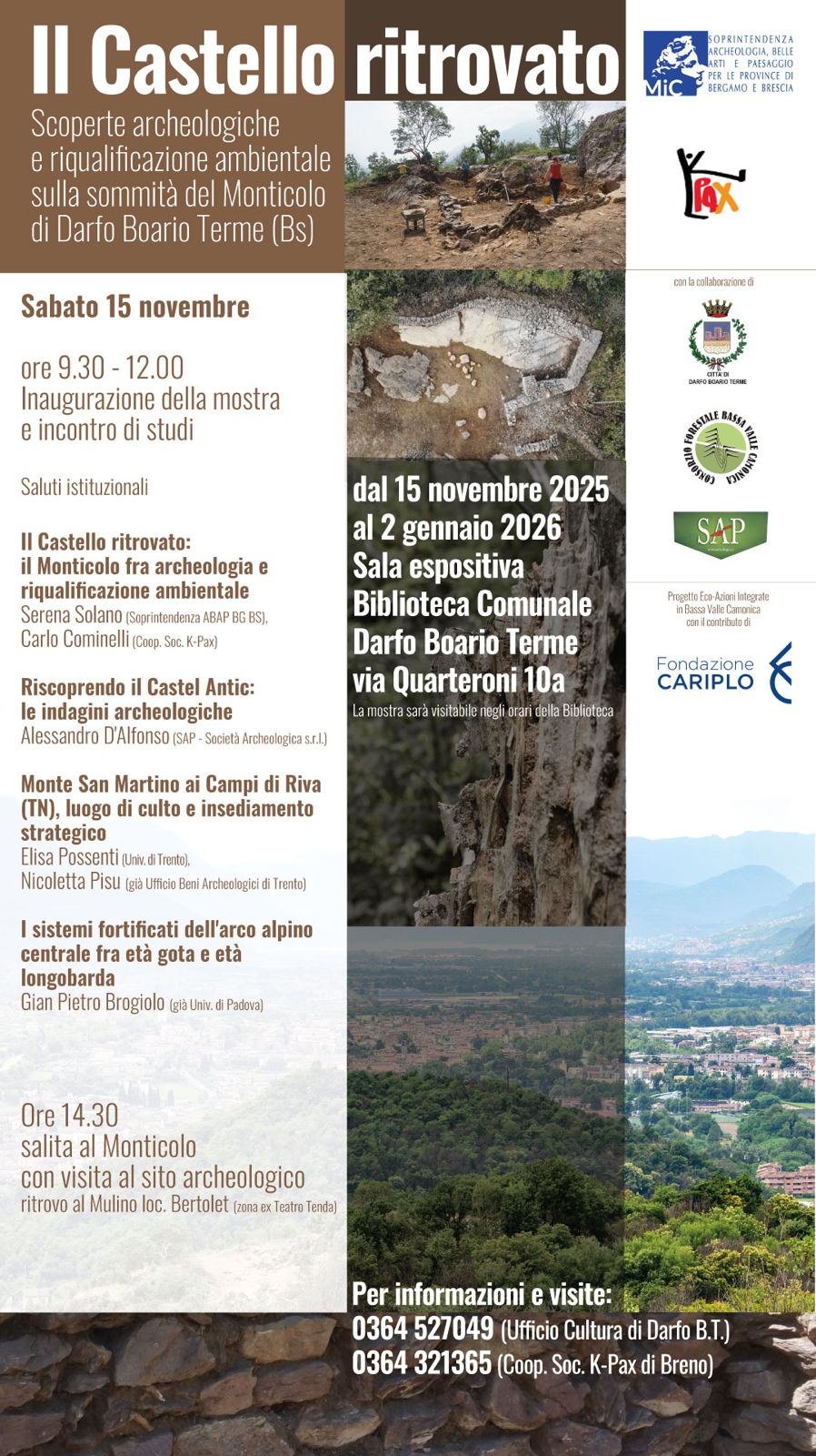 ore 14:30: salita al Monitocolo con visita al sito archeologico. Ritrovo al Mulino loc. Bertolet (zona ex Teatro Tenda)